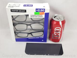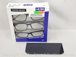 Lot #0187: 3 Foster Grant Classic +2.5 Reading Glasses w/1 Case