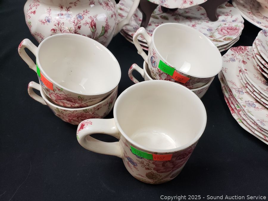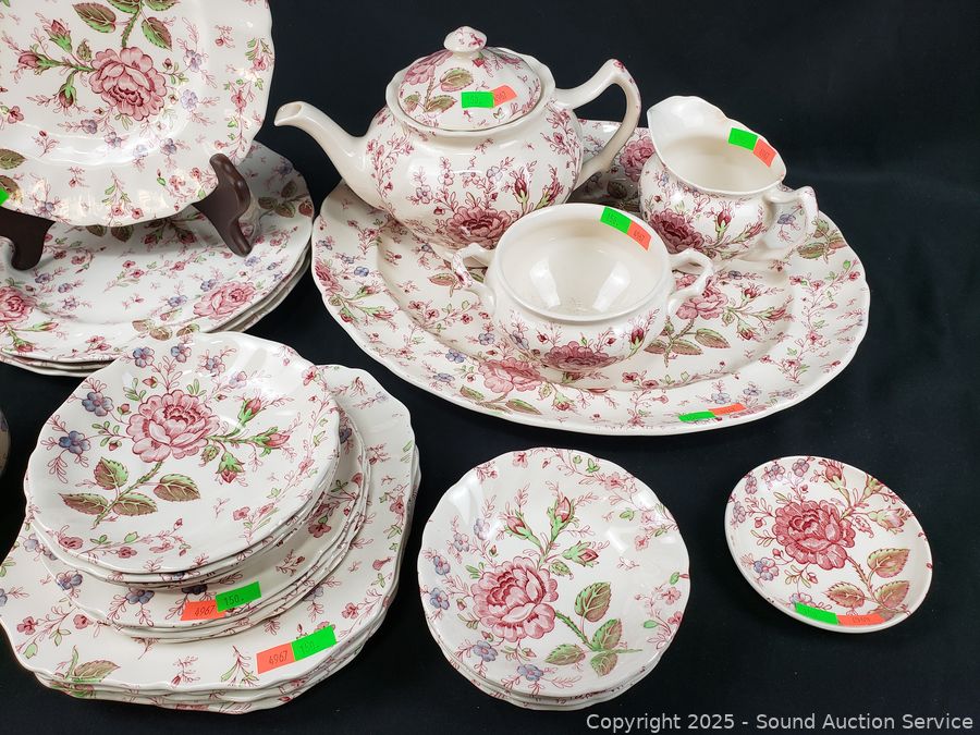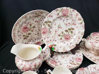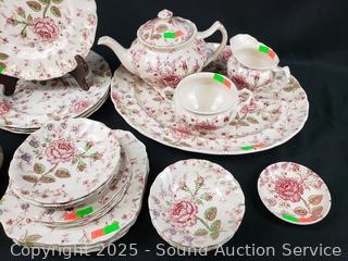 Lot #0150: 32pc Vintage Johnson Bros. "Rose Chintz" Fine China Dish Set