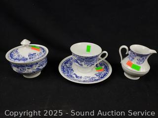 Cream/sugar, cups saucer, 2 plates, teapot. Don't see any issues.