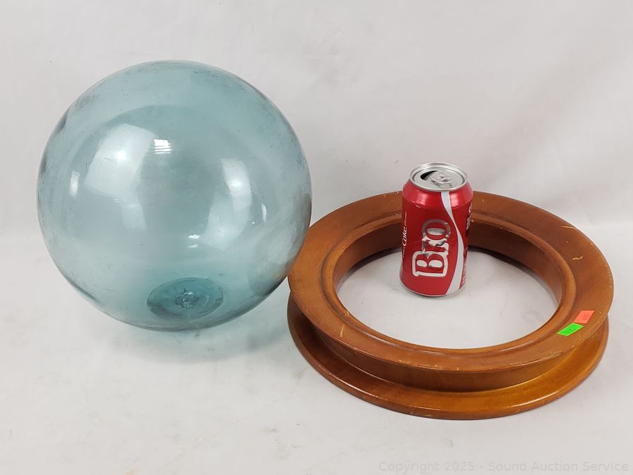 Lot #0302: 9" Japanese Blown Glass Fishing Float w/Wood Ring
