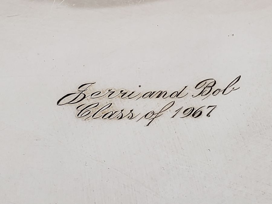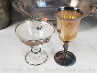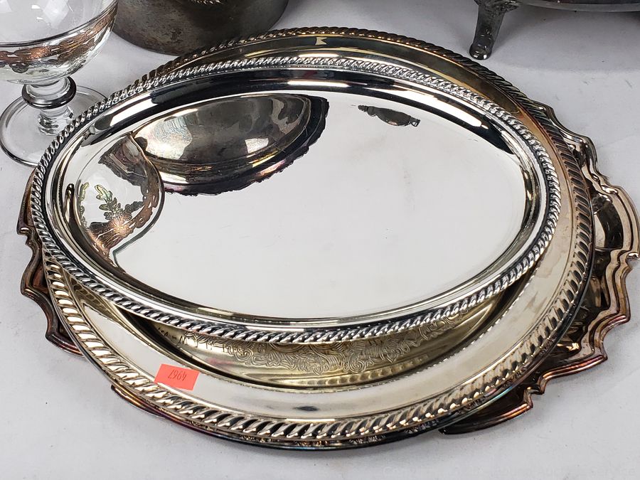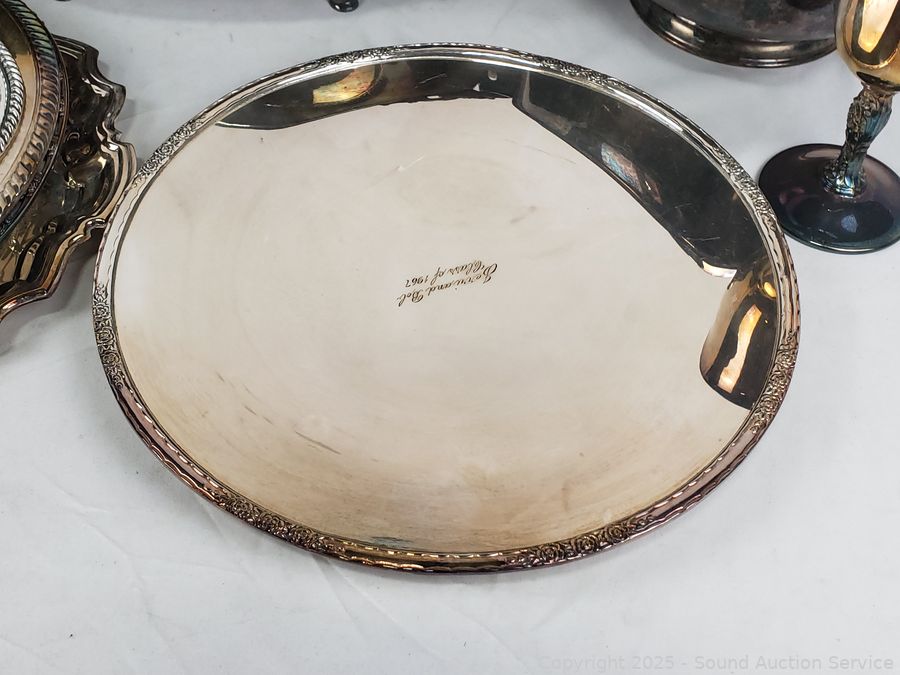 Goblets, ice buckets, chargers/trays, cups, trivet, bowl, footed oval server, etc. Most appear to be W.M.Rogers.