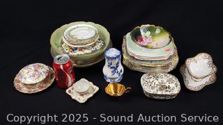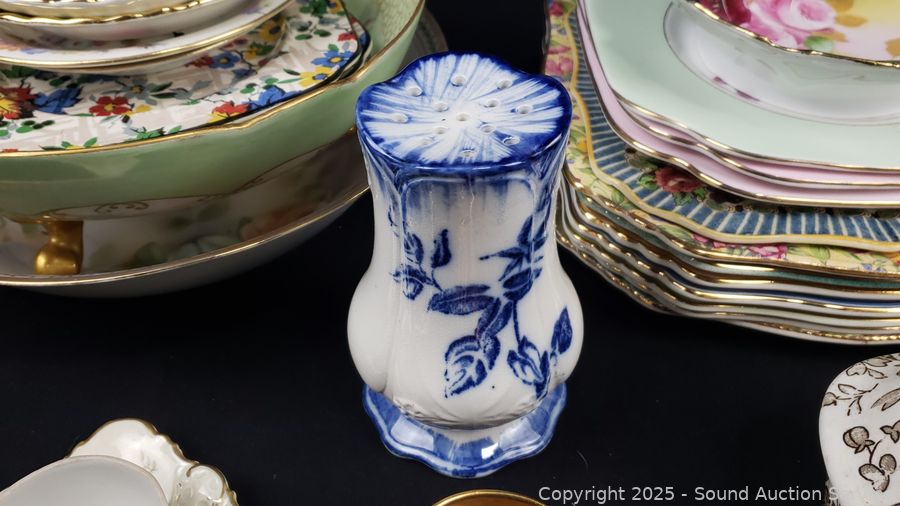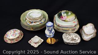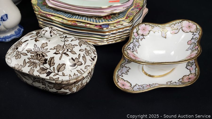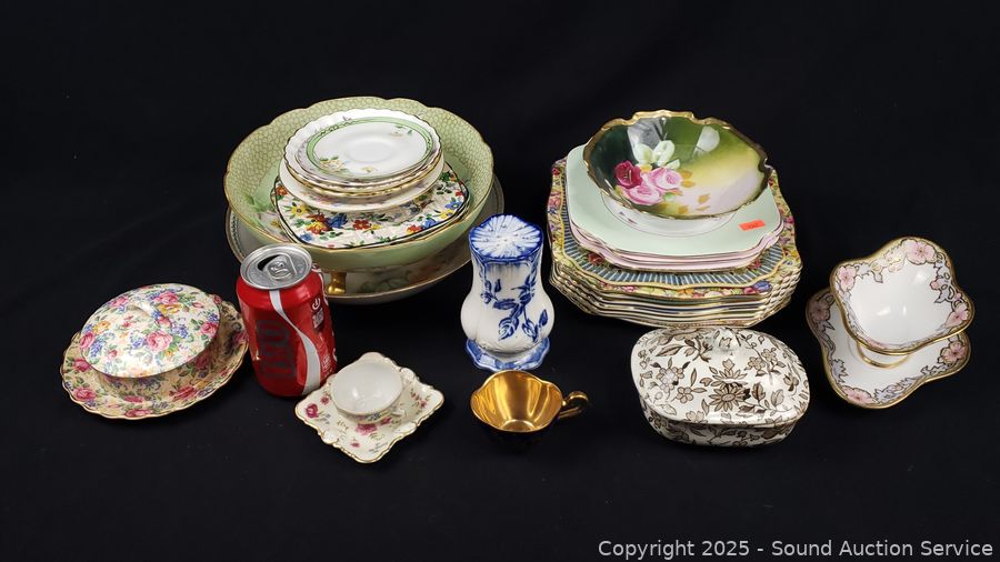 Some brands include Nippon, Colclough, Minton "Rosalynde", Rosenthal, Prussia, etc. Refer to photos for lot contents, more details.