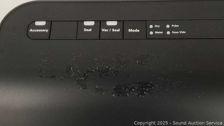 Has power, vac & seal appears to be functioning as intended. Handheld unit is untested. Some tape residue, dirty spots, wear from use.