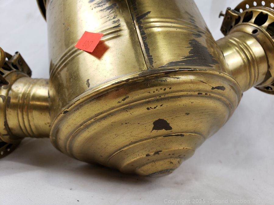 Lot #0267: "The Angle Lamp" Dual Light Brass Finish Electric Lamp
