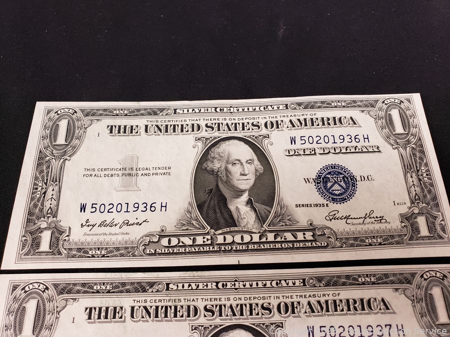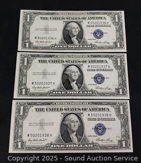 Lot #0103: 3 Sequential Serial 1935E $1 Silver Certificates