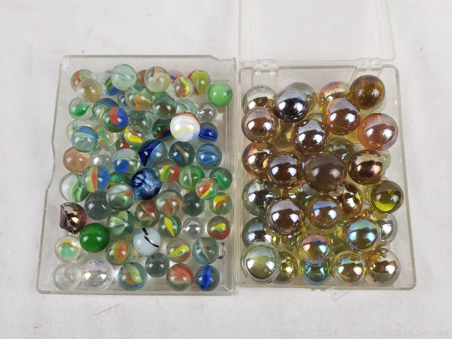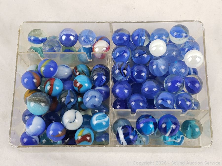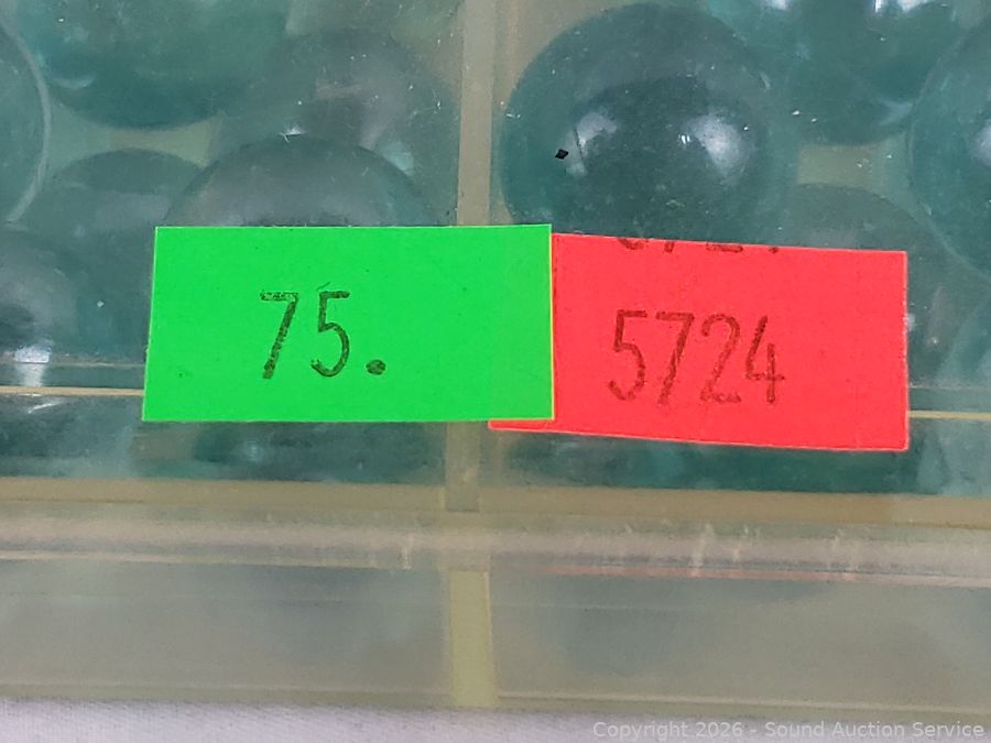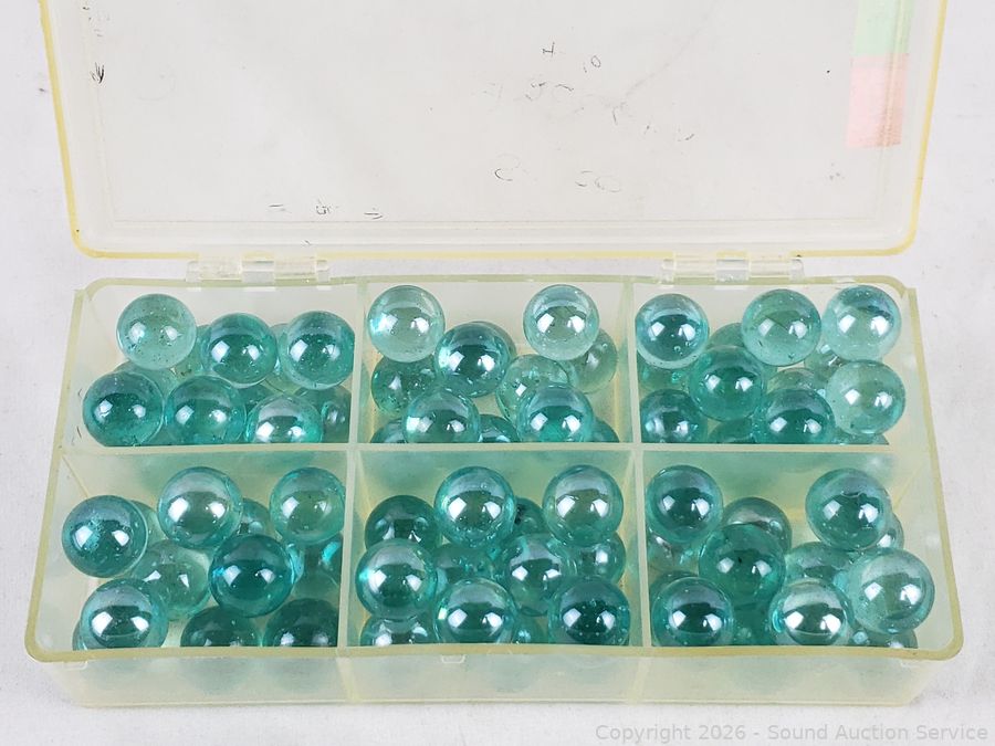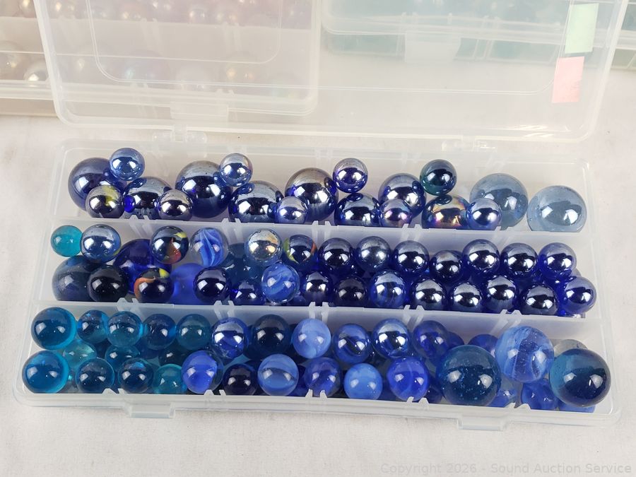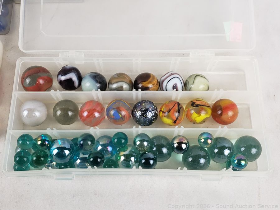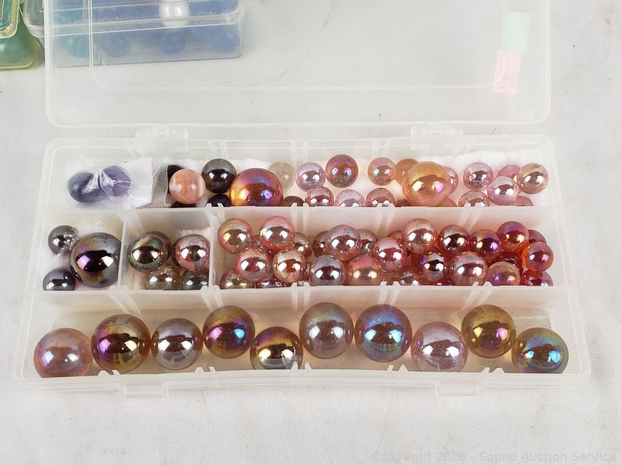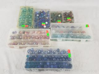 Lot #0075: 7 Organizers Full of Marbles