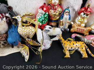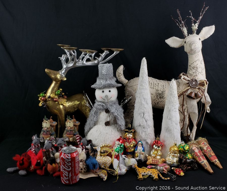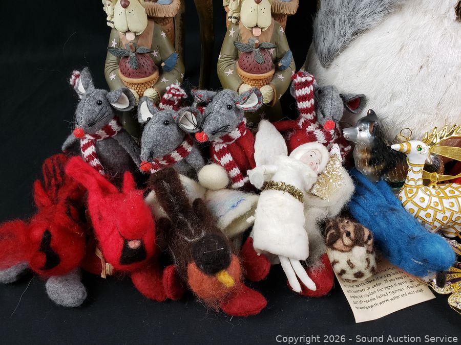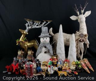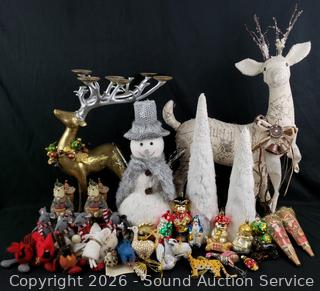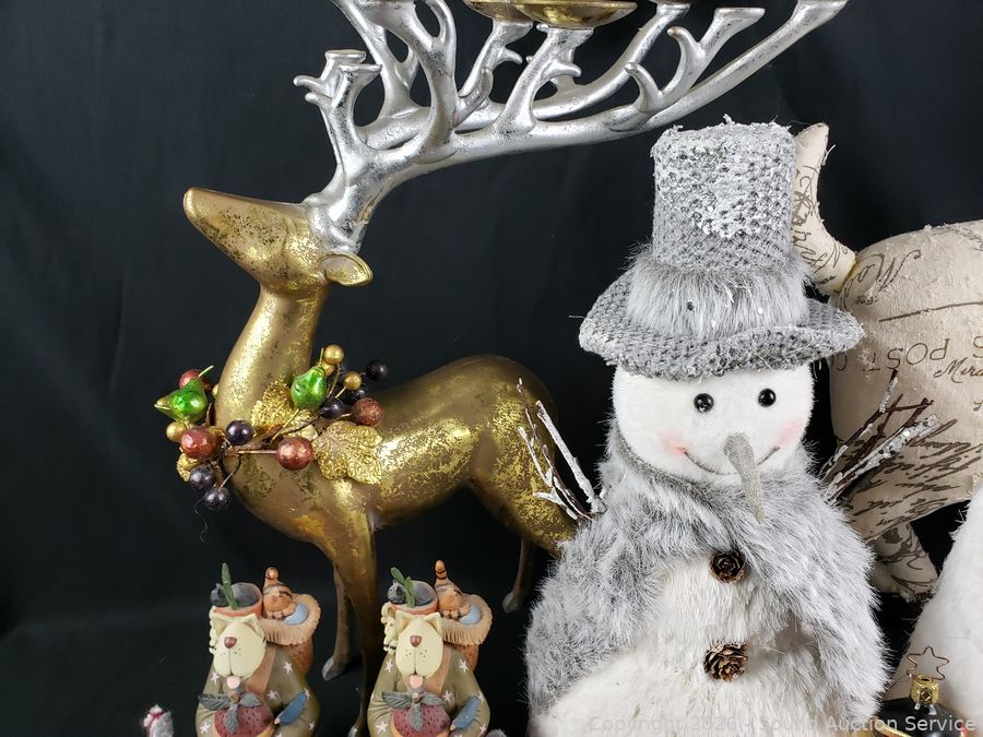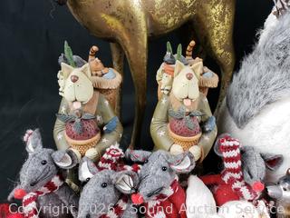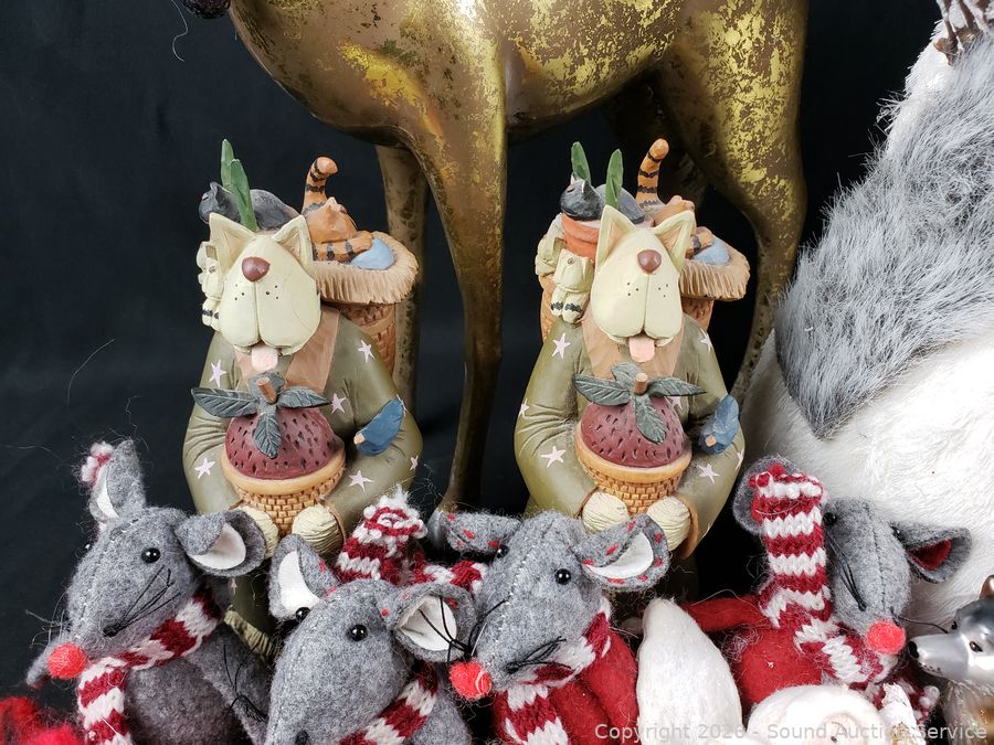 Der figure, deer candle holder, cat & mouse figures, etc. Refer to photos for lot contents, more details.
