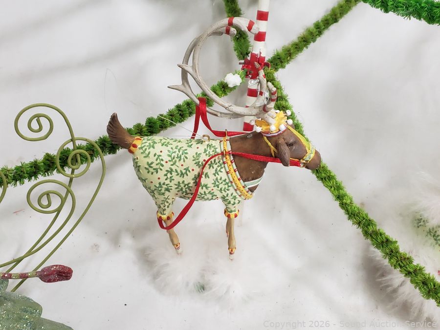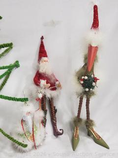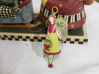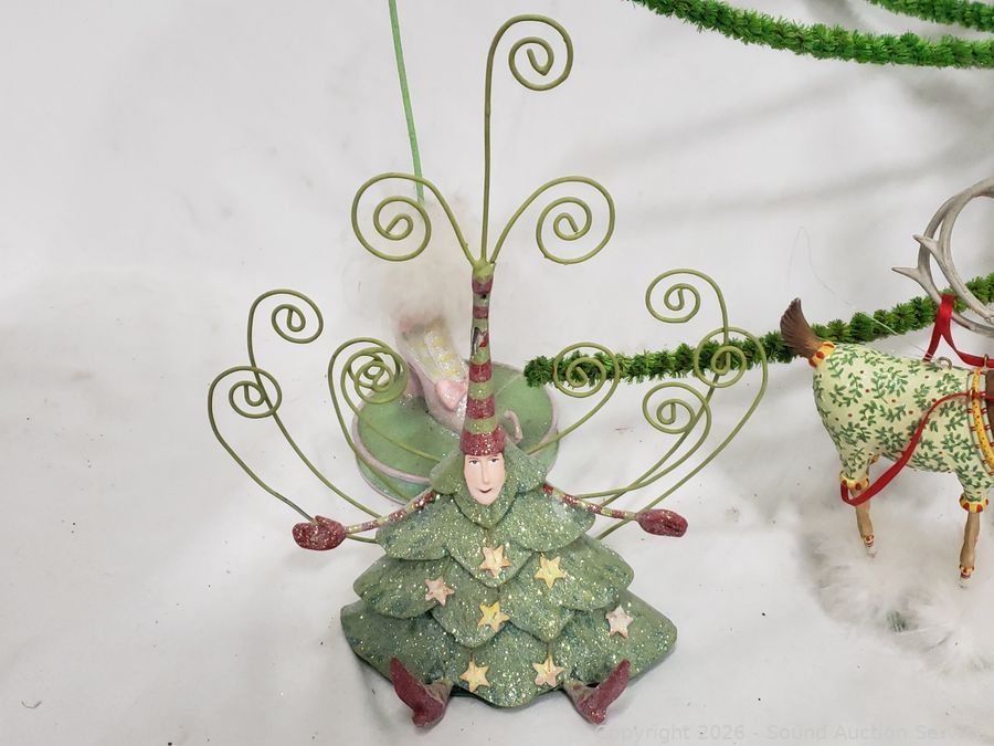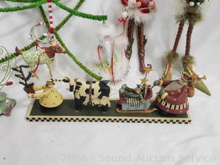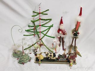 Williraye Studio Sculpted "Christmas Parade" figure, card holder tree, Patience Brewster Dept. 56 Santa Elf & other decor. Refer to photos for lot contents, more details.