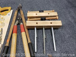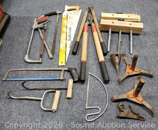 26" crosscut saw, loppers, bench clamp parts, crosscut saws. Refer to photos for more details.
