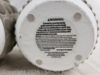 Both appear unused. Mint Eucalyptus & Lemon Grass Eucalyptus scents. Approx. 4.75" H x 6" Dia.