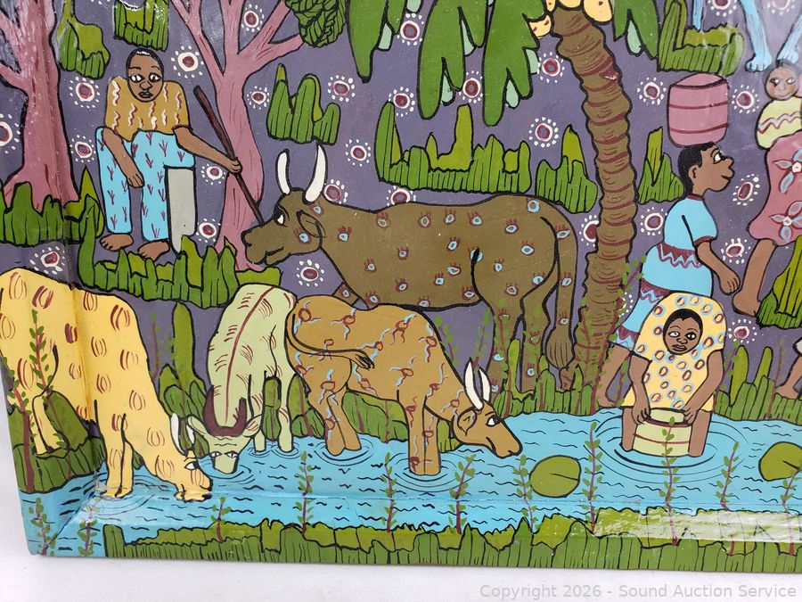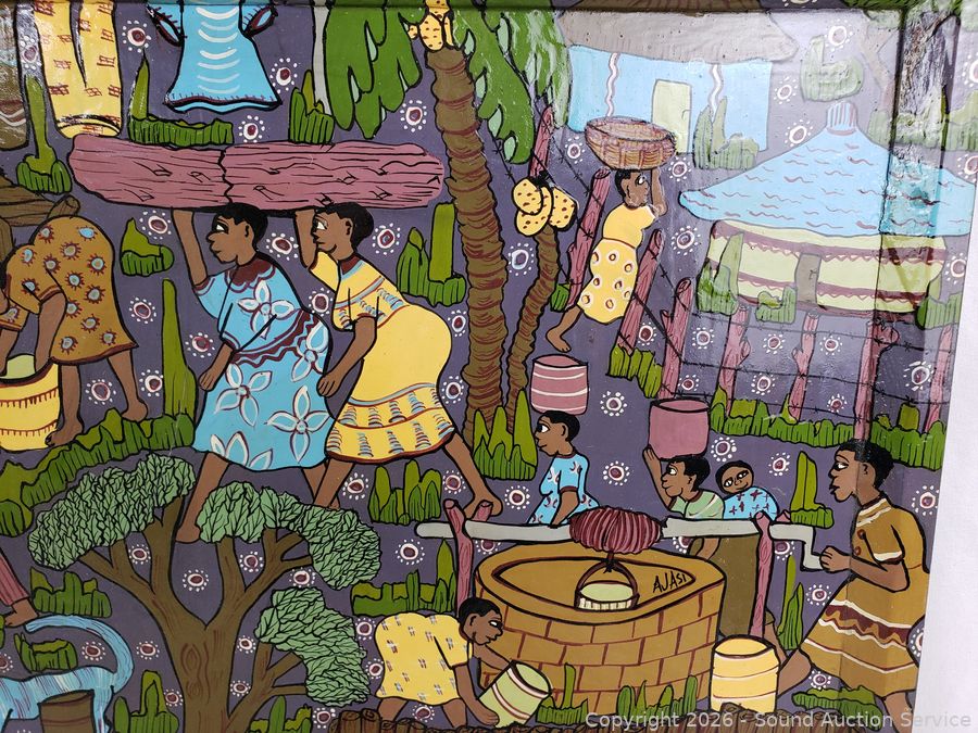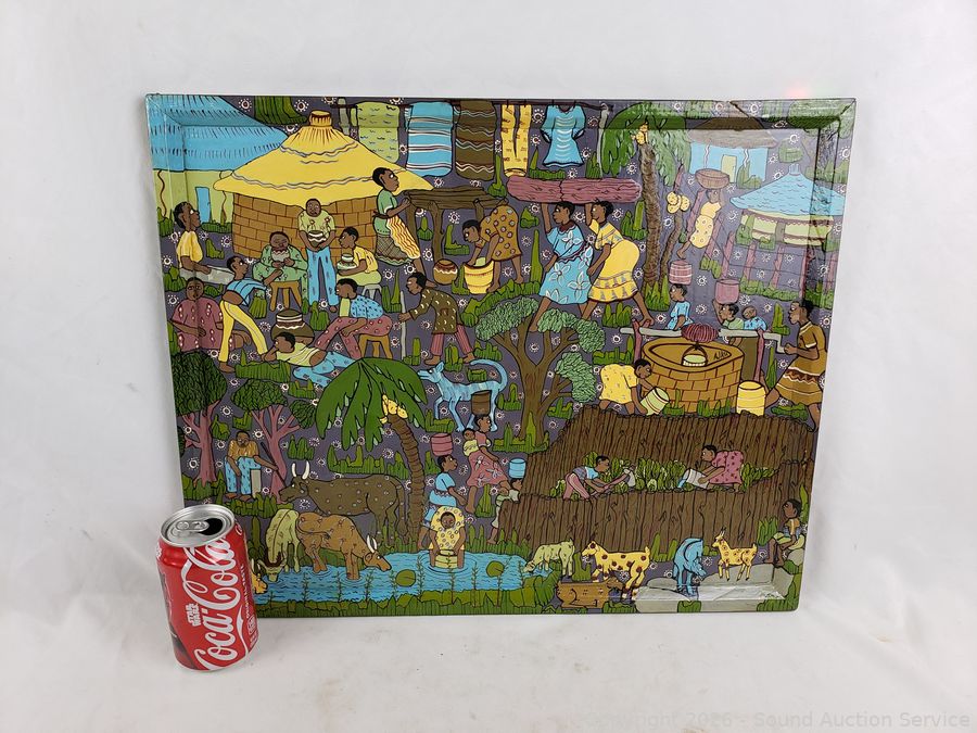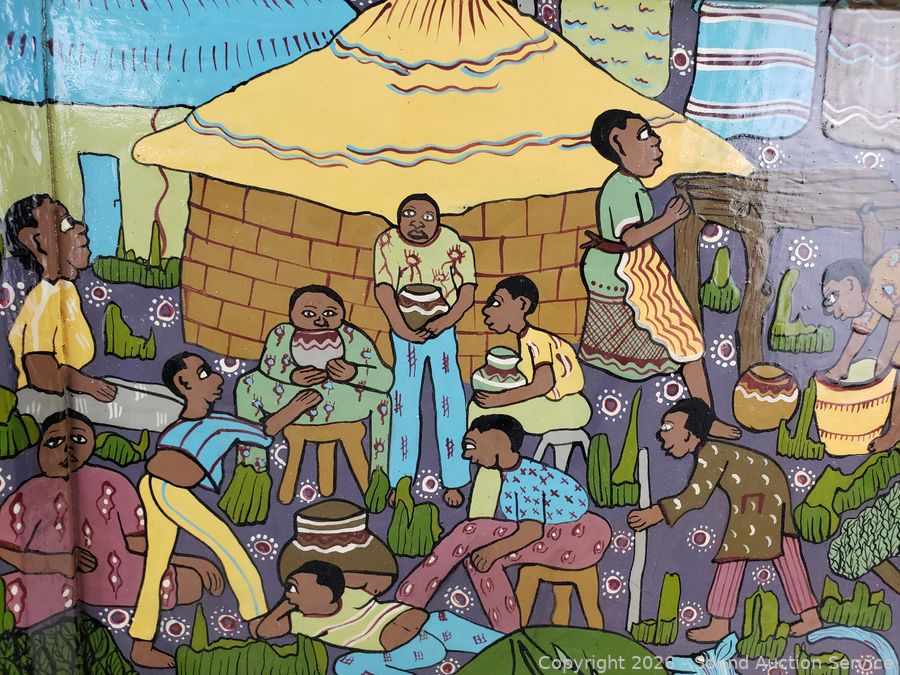Lot #0223: Zimbabwe Artist Village Scene Artwork