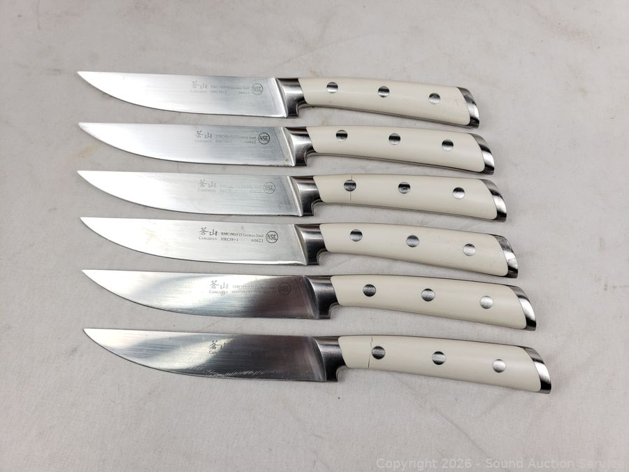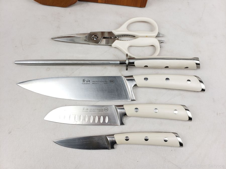 Lot #0255: 11pc Cangshan Ivory Handle Stainless Cutlery w/Block