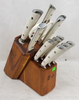 Lot #0255: 11pc Cangshan Ivory Handle Stainless Cutlery w/Block