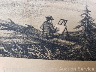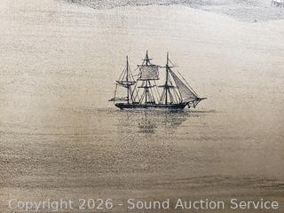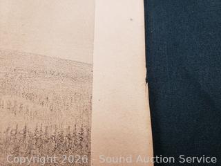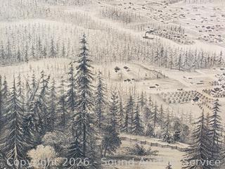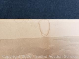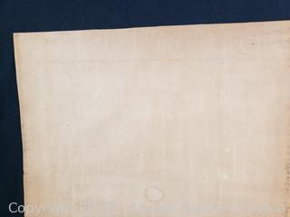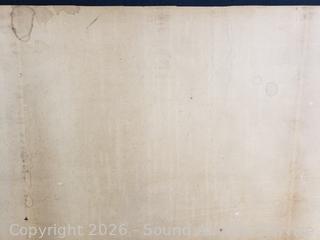 E.S. Glover, A.L.Bancroft & Co. Lithograph. Edge has been hand cut to fit into frame, 2 vertical water damage marks, and water stain on the bottom edge. 28" x 38". Washington became a State in 1889, so this is from before Washington was even a state. Great piece of history! Some scuffs, wear to frame. Appears very old, possible antique.