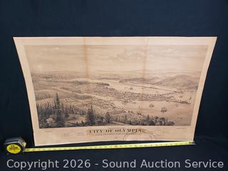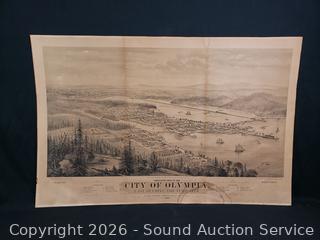 Lot #0010: 1879 Birds-Eye View of Olympia Lithograph