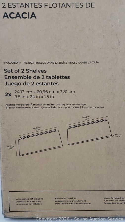 Lot #0127: 2 Vision Home Floating Acacia Wood Shelf