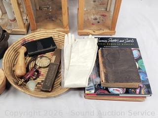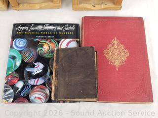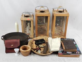 Lot #0074: 3 Candle Lanterns, 1855 Dictionary, Marble Book & More