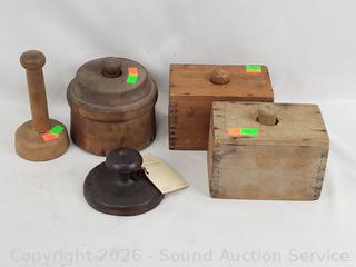 Lot #0072: 5 Vintage/Antique Wood Cookie Presses