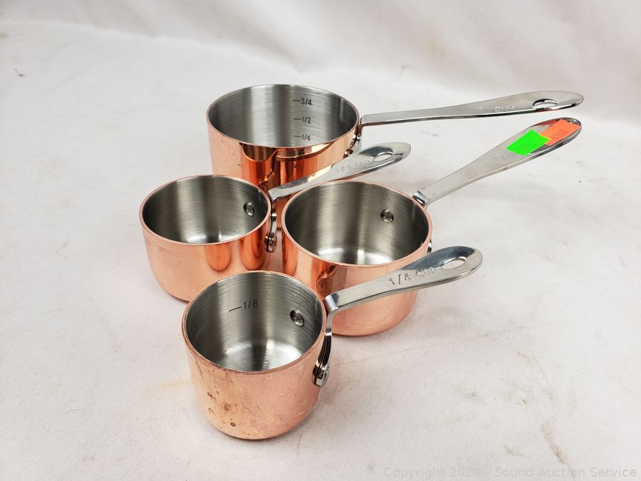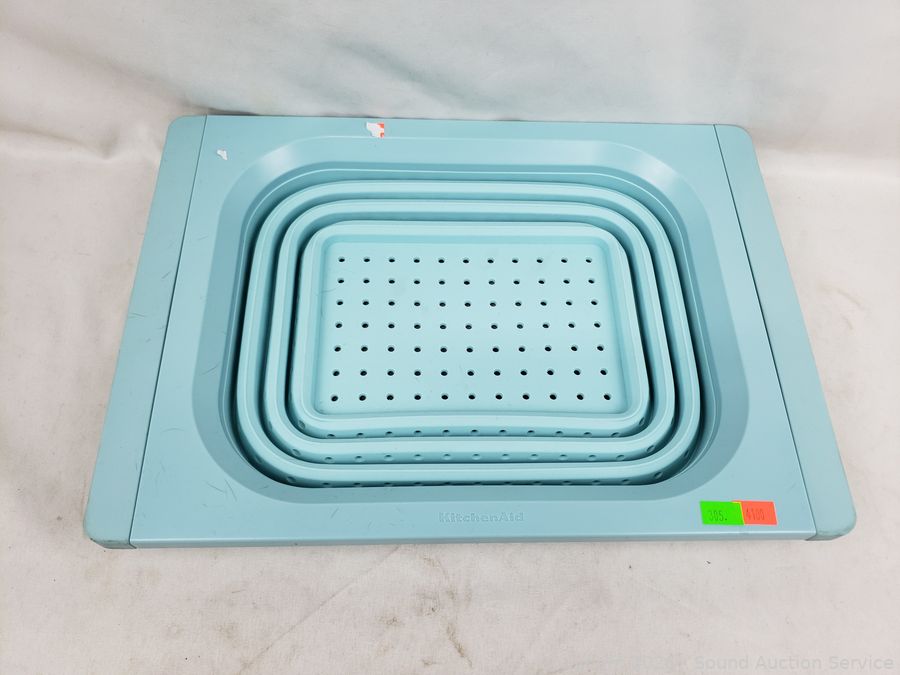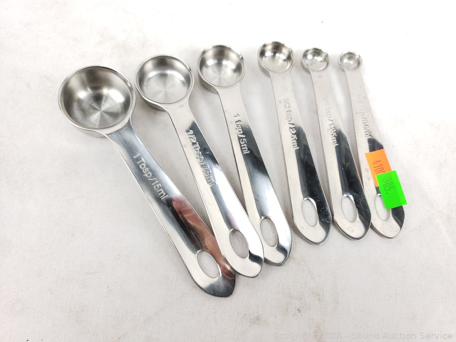 Lot #0305: 6pc Teaspoon Set, 4 Measuring Cups & Silicone Collapsible Colander