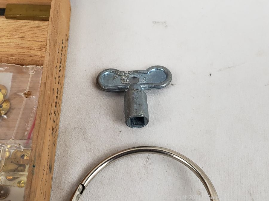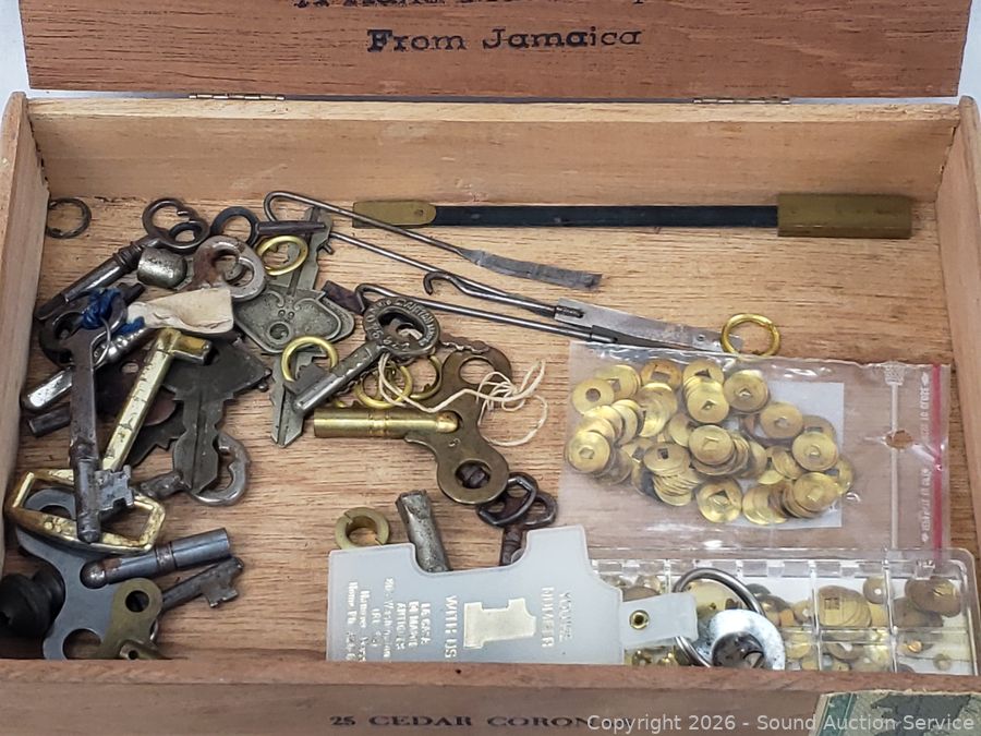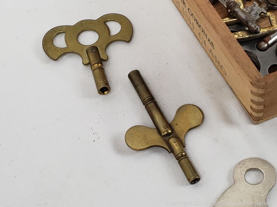 Lot #0070: Cigar Box w/Assorted Vintage & Antique Clock & Other Keys