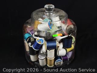 Lot #0111: Glass Jar Full of Sewing Thread
