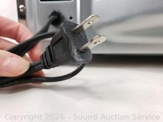 Has power, appears to be functioning as intended. Comes with 4 racks. Some wear dirty spots from use. 12.5" H x 21.25" W x 16" D.