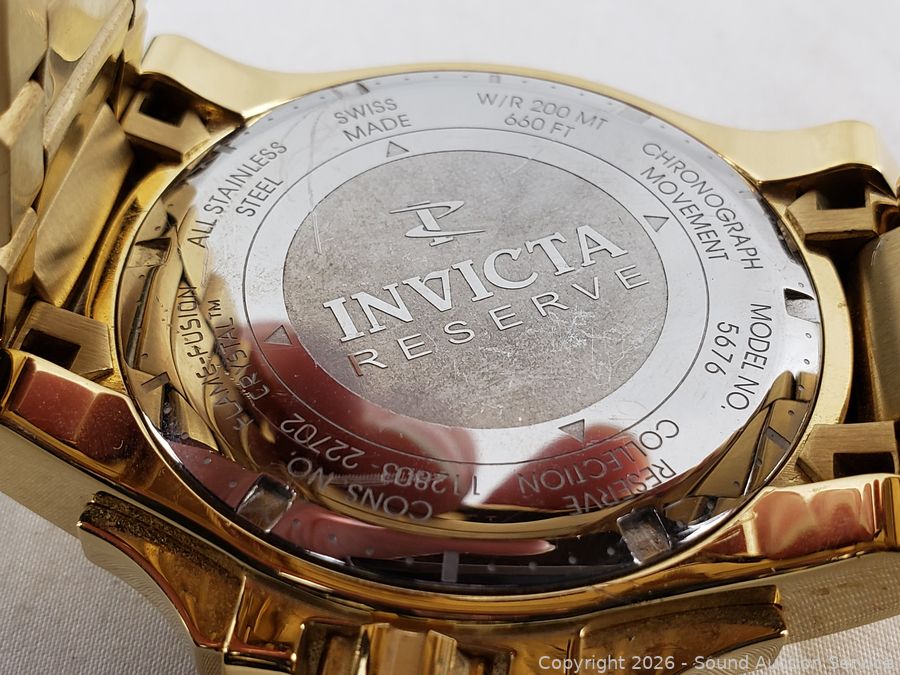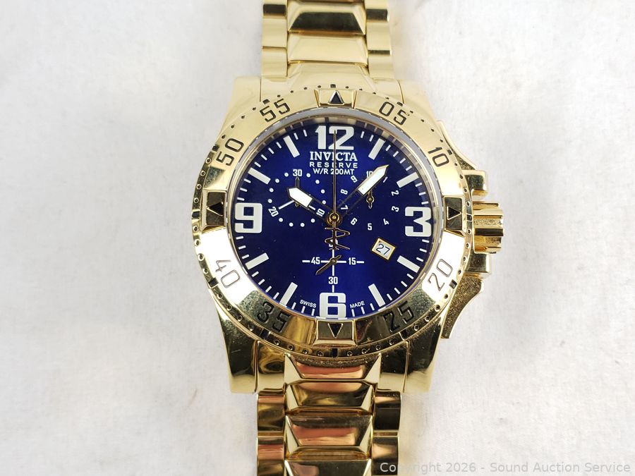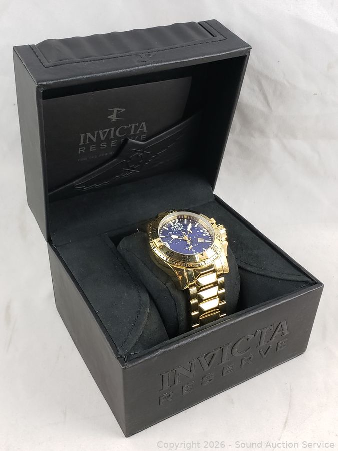 Lot #0005S: Invicta Reserve Collection Men's Gold Tone & Blue Watch w/Watch Case