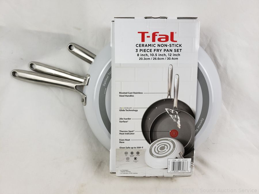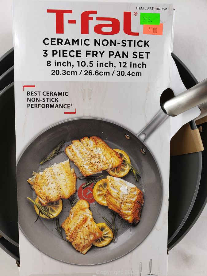 Lot #0215: 3 T-Fal Ceramic Non-Stick 8|10.5|12" Skillets