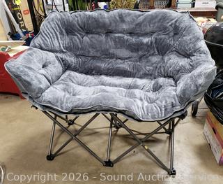 Lot #0350: Plush Folding 2-Seat Camp Chair w/Storage Bag