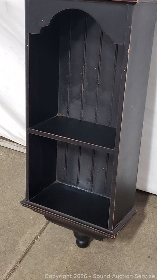 45" H x 12" x 6.5". Some scuffs, wear to finish.