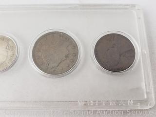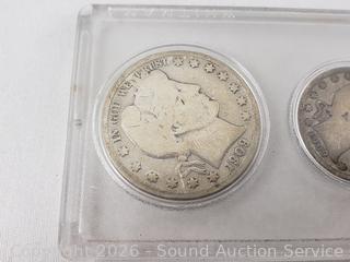 Barber 1/2 Dollar, Barber Quarter, Barber Dime, V-Nickel, Wheat Penny.