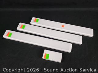 All have power, need charged. No 3M mounting tape for lights or USB-C charging cables. 12" x 1-1/8" x 1/2".