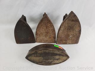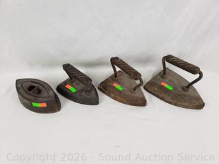 Lot #0104: 4 Antique Cast-Iron Sad Irons