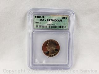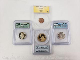1956 1c MS65 Red, 2012-S PCGS PR69DCAM $1 Presidential Grover Cleveland 22nd, 2005-D First Day Issue SP69 Quarter, 1981-S PR70CAM Quarter. ATTN: We are not coin or currency experts or graders, please use your own judgement when bidding.
