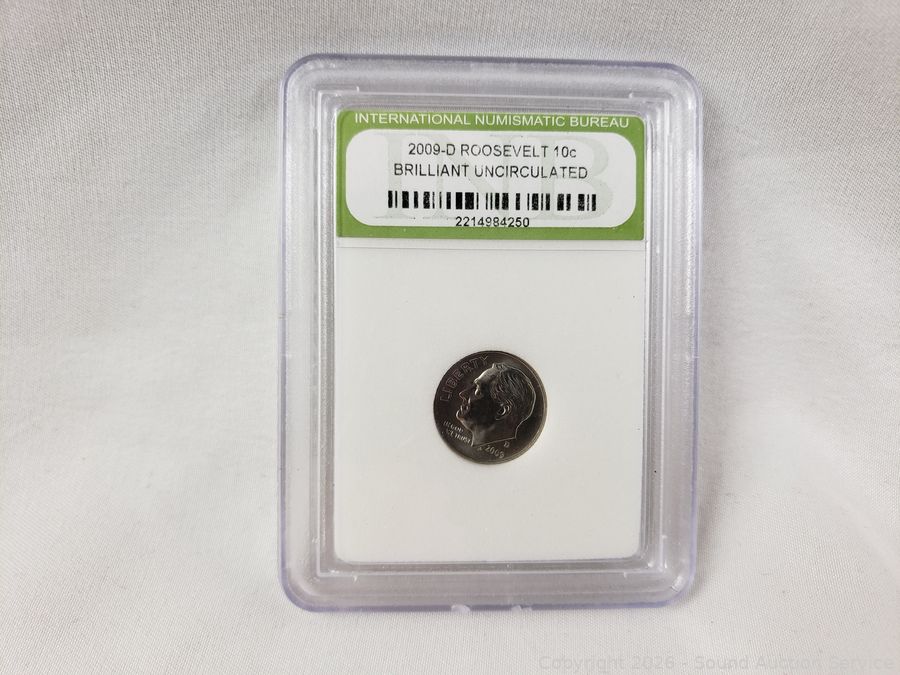 1941-S 5c VF20, 1955-D 5c Scratched VF20, 2001-S Roosevelt 10c DCAM Gem Proof, 2009-P Roosevelt 10c Brilliant Uncirculated, 2009-D Roosevelt 10c Brilliant Uncirculated. ATTN: We are not coin or currency experts or graders, please use your own judgement when bidding.