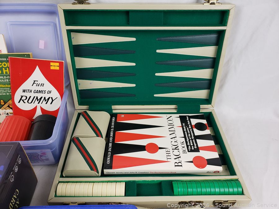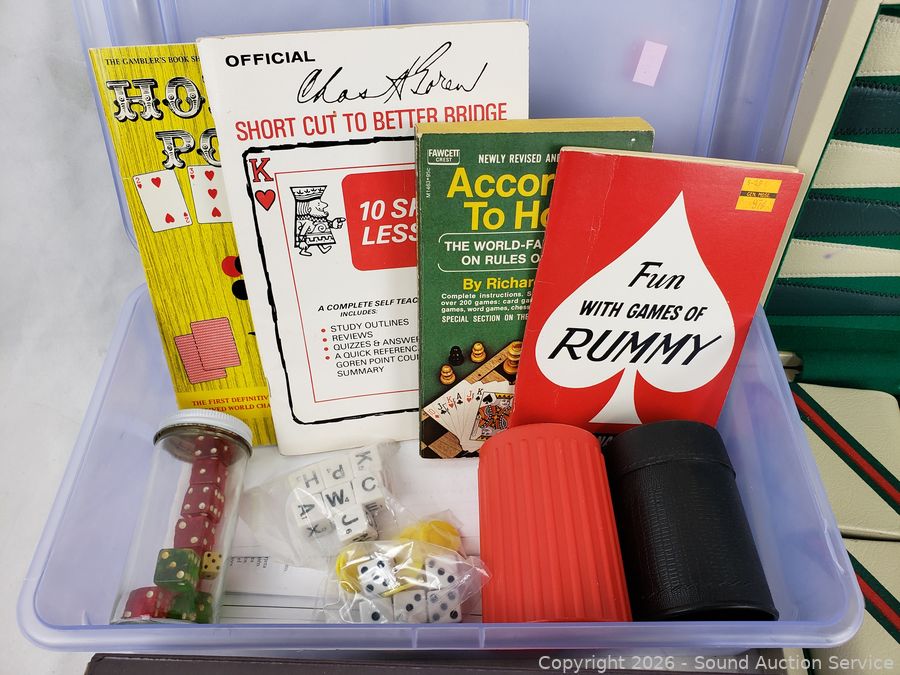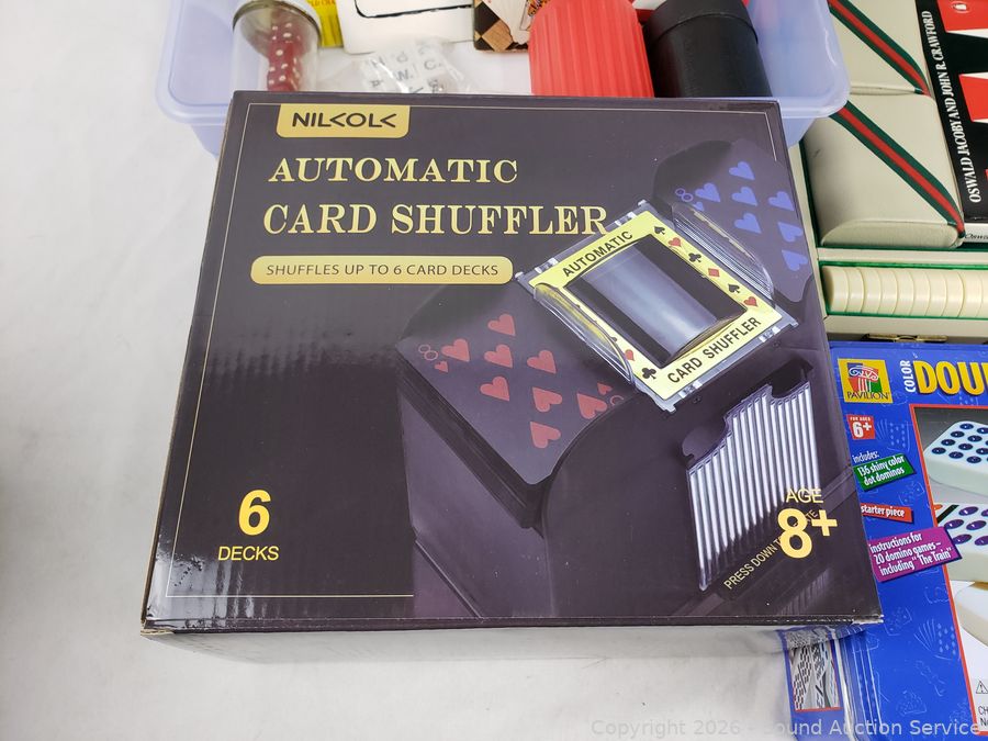 Playing cards, Dominoes, Card Shuffler, Dice, Poker Books, etc. Refer to photos for lot contents, more details.
