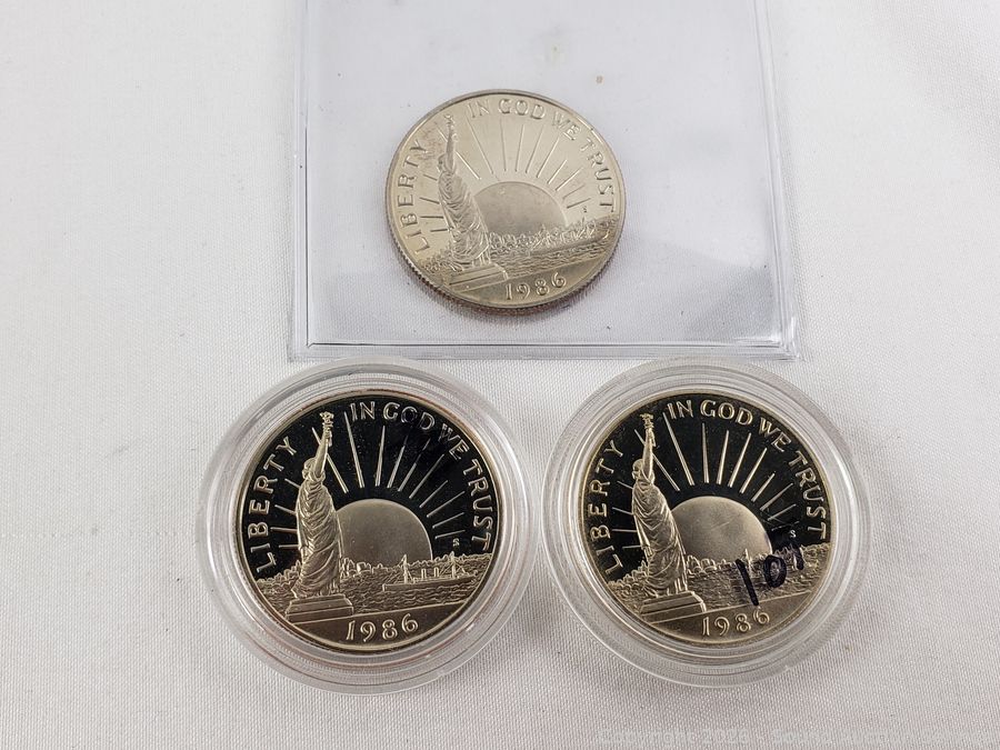 (3) 1986 Liberty 1/2 Dollars, 1978 Eisenhower Dollar, Westward Journey Nickel Series Set, 1960 Proof Set. ATTN: We are not coin or currency experts or graders, please use your own judgement when bidding.