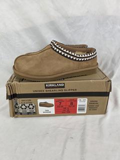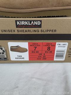 Lot #0258: Kirkland Tan Unisex Shearling Slippers S:M7|W8
