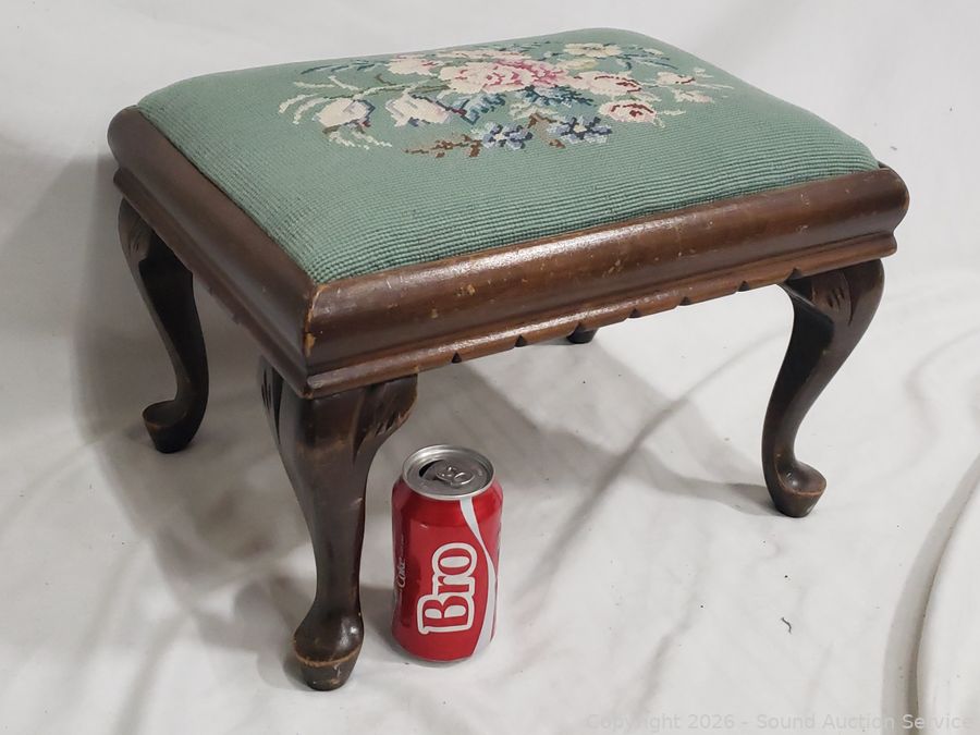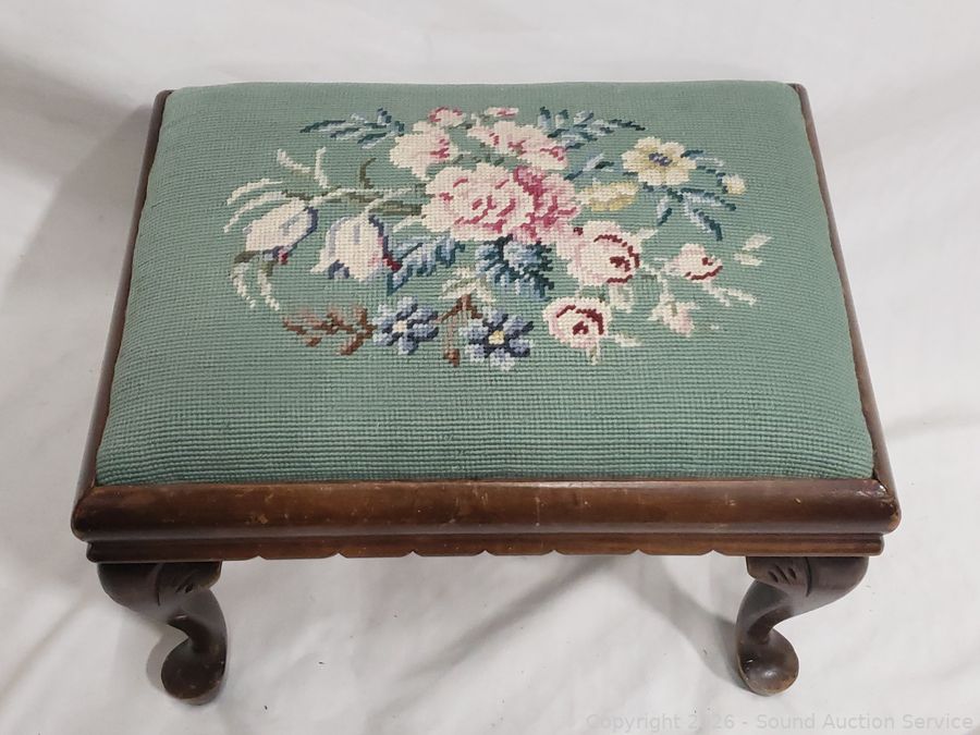 Lot #0024: Needlepoint Floral Print Foot Stool