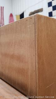 Plywood construction. Some scuffs, wear to finish. 84" H x 36.25" W x 12.25" D.