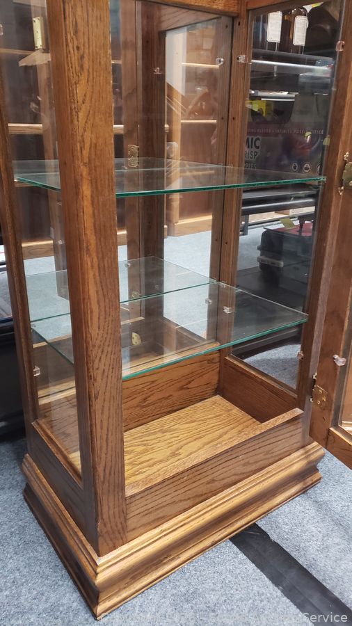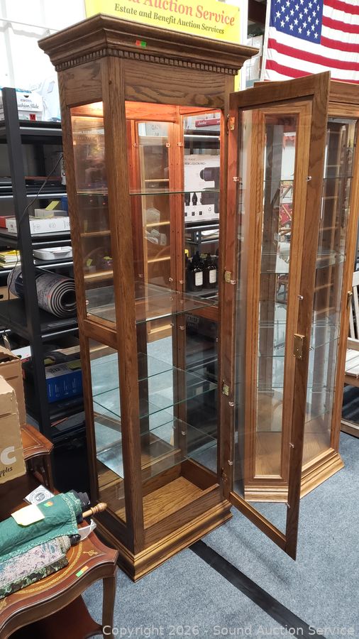 Lot #0004: Oak Mirrored Lighted Corner Cabinet