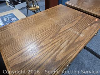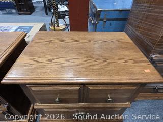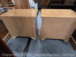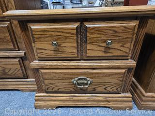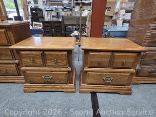 Lot #0017: Pair of 2 Drawer Oak Finish Nightstands