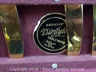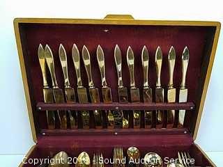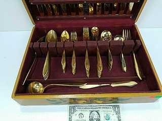 Lot #0307: 85pc. Gold Tone Dirilyte Flatware Set w/Case