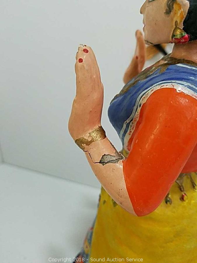 Comes with handcrafted clay dancing doll, arm has been repaired.