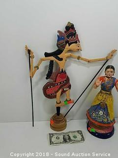 Lot #0125: Handcrafted Indonesian Shadow Puppet & Dancing Doll