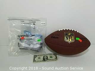 Lot #0075: Wilson NFL Football & 3-Pack Speedo Swim Goggles