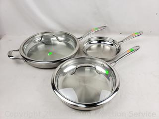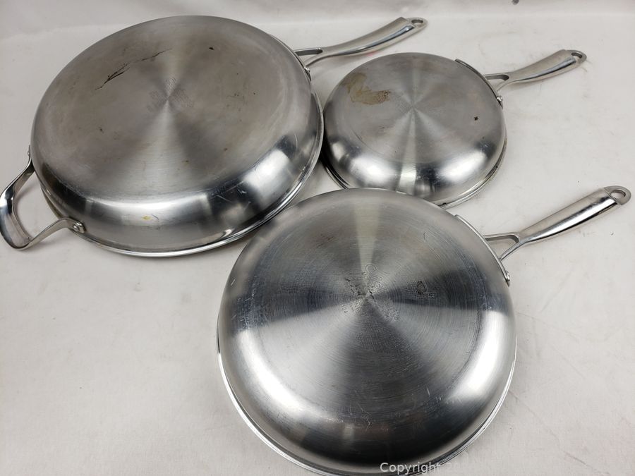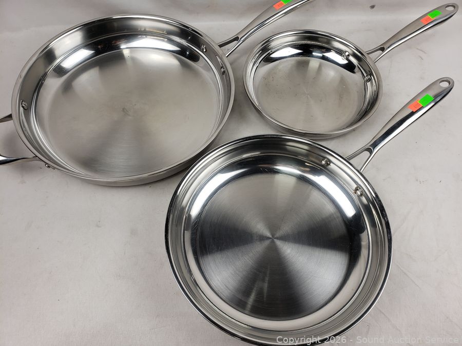 Lot #0123: 3pc Cuisinart 8|10|12" Skillets w/2 Lids