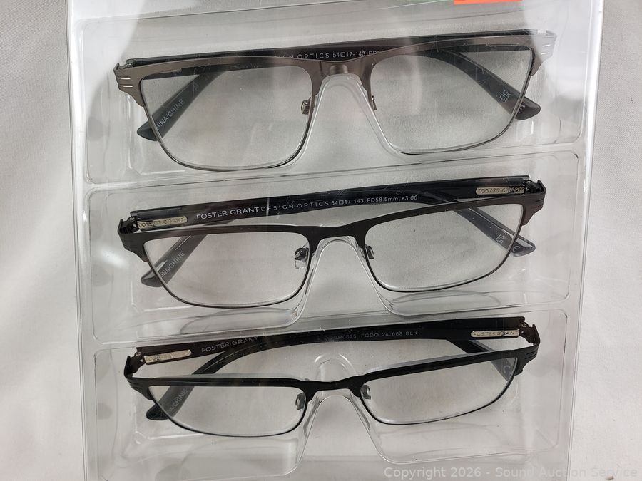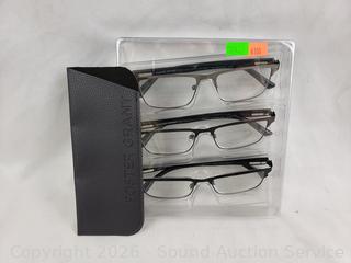 Lot #0214: 3 Foster Grant Full Frame Metal +3.0 Readers w/1 Case