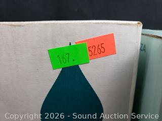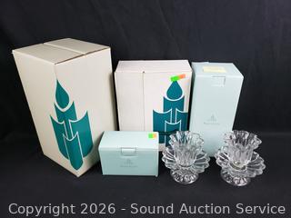 All but one in original packaging. Rustic Villa Votive Pair, Gold Universal Tealight Tree, Chantilly Votive Holder Sets, Savannah Lamp.