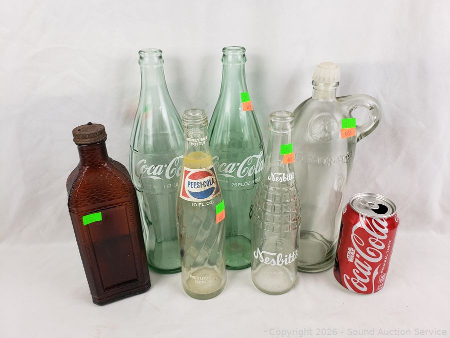 Pepsi, Coca-Cola, Nesbitt's & others. Various wear from age, use.